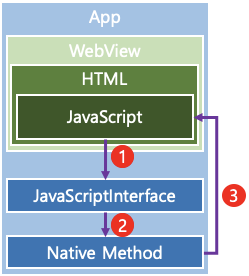 웹을 사용하다보면 앱과 통신을 하고, 웹에서 보낸 이벤트를 받아 앱에서 처리해야하는 경우가 필요하기도 합니다(토스트 메시지 노출 등). 이때 우리는 웹에서 이벤트를 받기 위해 JavaScriptInterface(브릿지라고도 함)을 사용합니다.